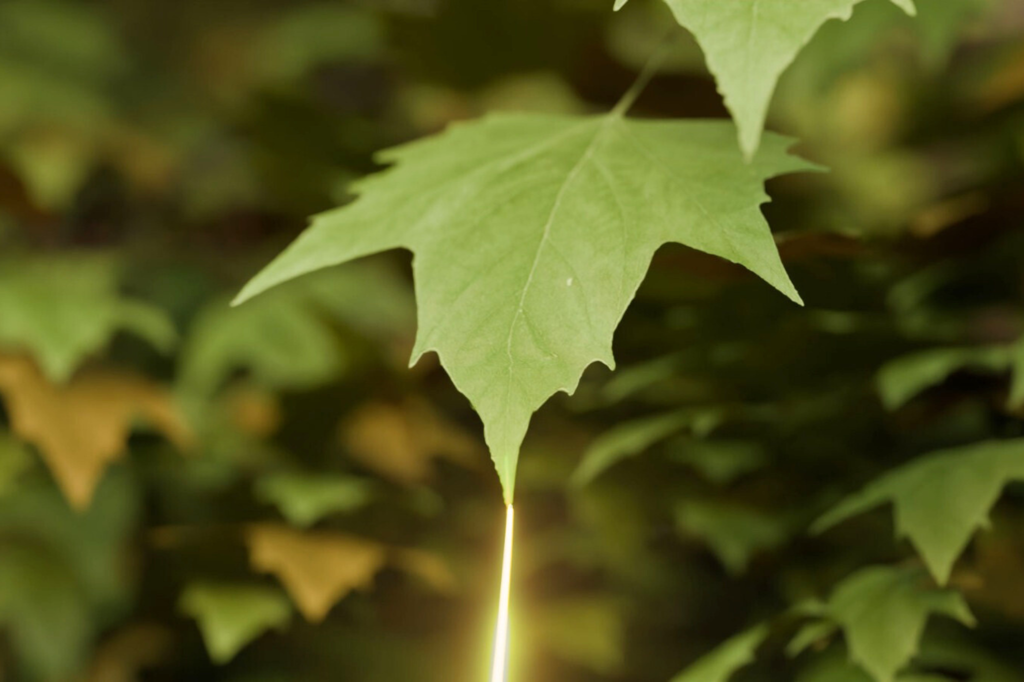 Dalle venature della foglia nascono raggi di luce dorata che si estendono dal basso verso l’alto, dando forma al vaso Amos. Questo movimento richiama il nostro modo di produrre: la stampa 3D, che costruisce ogni oggetto strato dopo strato, con precisione e controllo.